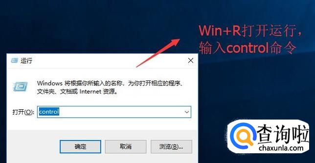 首先按下Win+R组合键打开运行界面,在运行界面的输入框中输入Control命令,如下图所示