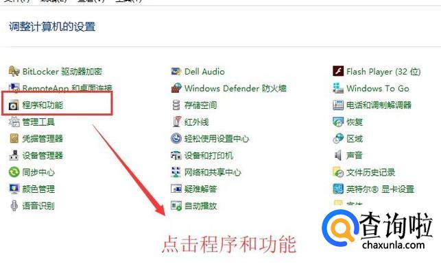 进入控制面板以后点击程序和功能选项,如下图所示,这里需要注意的是图标的显示位置各个电脑中会有差异