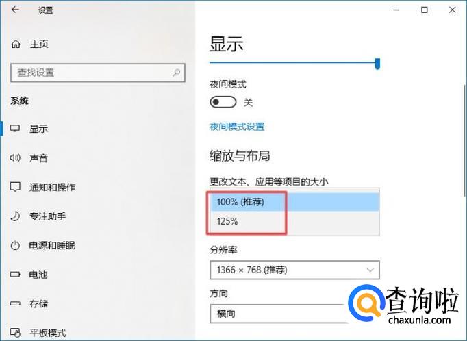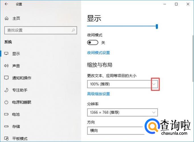 弹出的界面,我们点击更改文本、应用等项目的大小边上的下拉箭头;