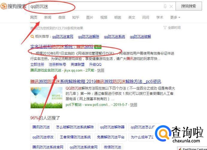 在浏览器中搜索“qq防沉迷”,然后再点击具有官网标志的链接,如下图所示。