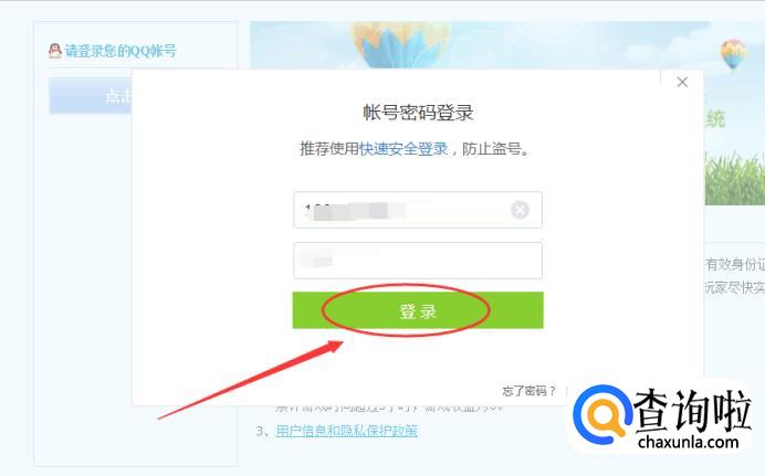 接着再输入QQ账号和密码,然后再点击下方的“登陆”按钮,登陆QQ。