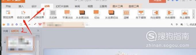 点击菜单栏上的动画-自定义动画