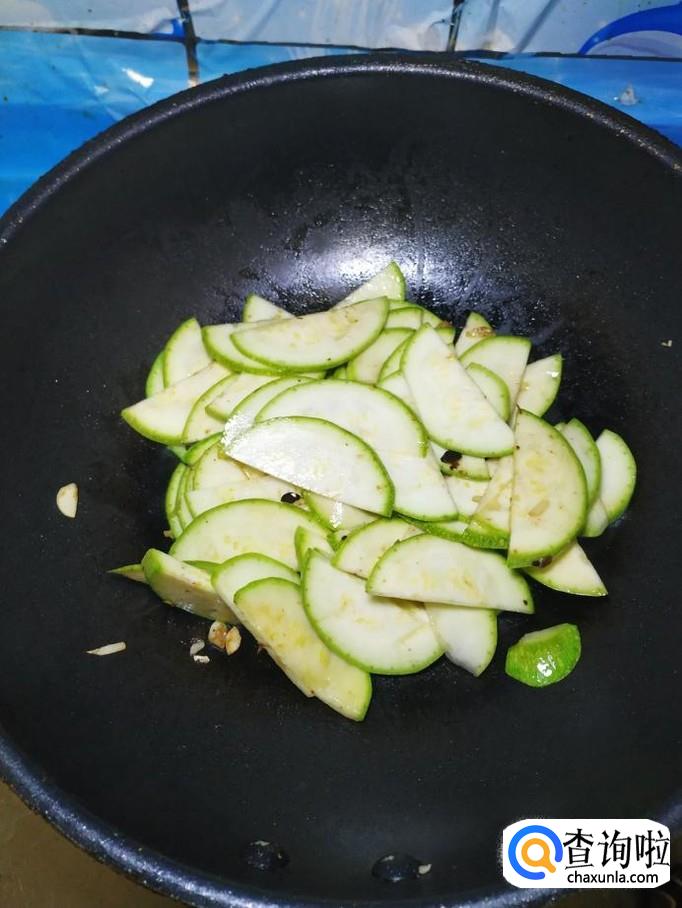 将西葫芦片,倒入锅中,翻炒均匀。