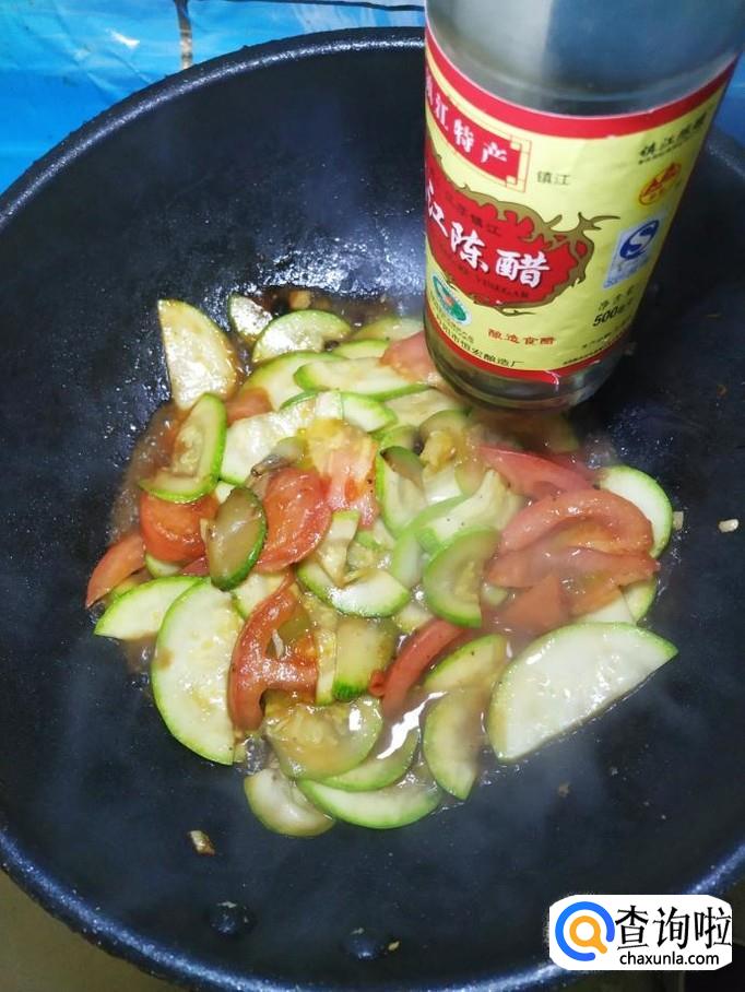 炒至西红柿开始变软出水,出锅前加少许陈醋,搅拌均匀。
