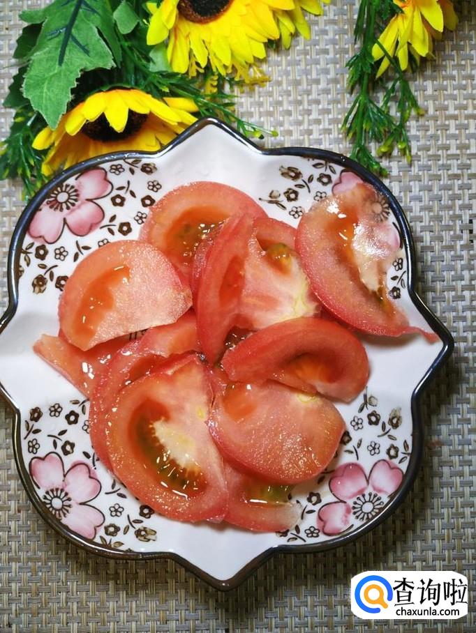 将西红柿切成片,西葫芦也切成片儿,再准备适量豆豉备用。