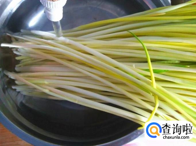 蒜黄很干净的,所以不需要择的,但是必须清洗干净,先用清水整体清洗几遍,然后把根部浸泡在水里半小时。