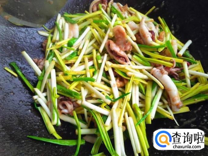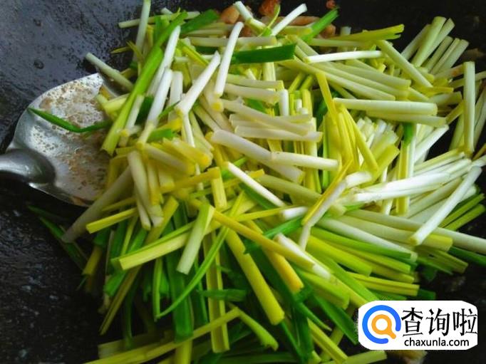 把蒜黄放进锅里,用大火快速的翻炒。