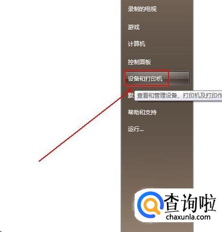 在弹出的菜单列表中单击“设备和打印机”选项。