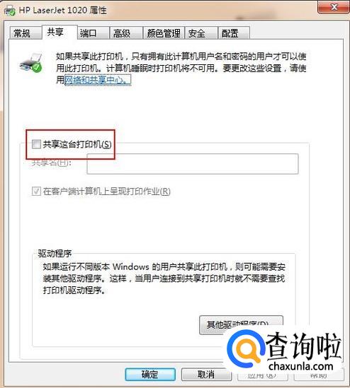 在“共享”选项卡下方找到“共享这台打印机”选项。