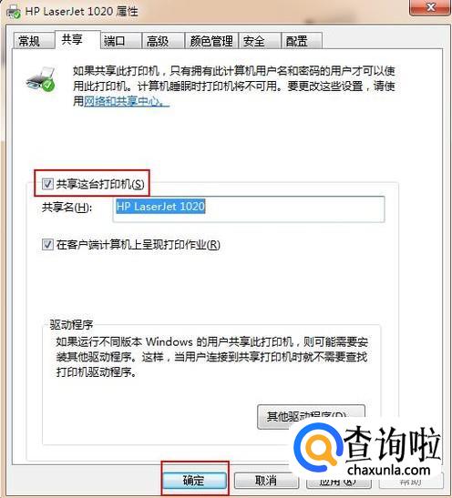 勾选“共享这台打印机”并点击“确定”按钮即可。