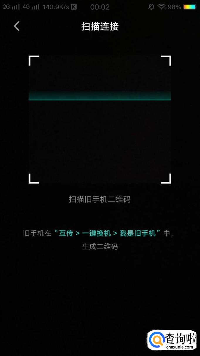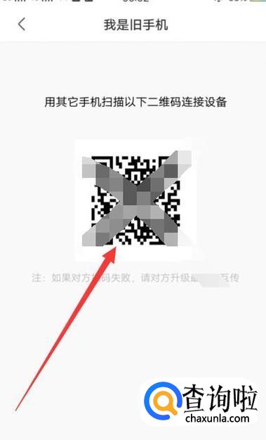 进入之后,用扫一扫功能扫描旧手机生成的二维码即可,如图所示。