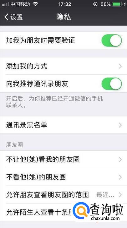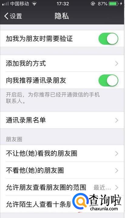最后绿色图标变成灰色后即可,那么陌生人将不能看到你的朋友圈。