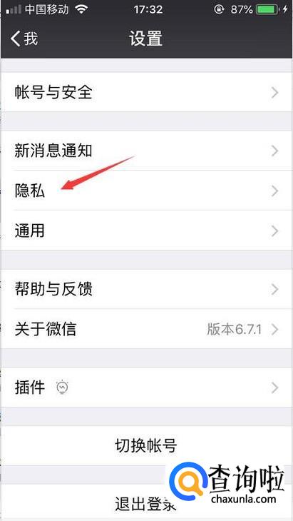 然后在设置的功能里点击隐私选项进入下一步。