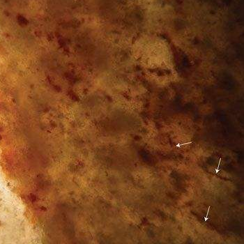 科学家曾在35亿年前的古老地层中发现了类似蓝细菌的化石。蓝细菌比大部分细菌都大,能够分泌一层薄薄的细胞壁。最重要的是,蓝细菌能够形成大的层状结构,这种结构被称为叠层石。如果将这种叠层石磨成薄薄的片,在其中可能发现保存精细的蓝细菌和藻类化石。