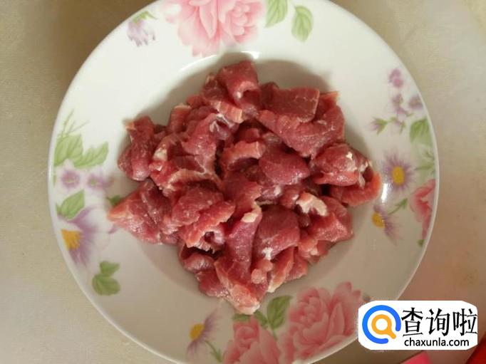 瘦肉我们选里脊肉,比较嫩比较好吃;我们将里脊肉洗净,切成小块薄片,加入少量料酒、蚝油,抓匀,腌制半小时;
