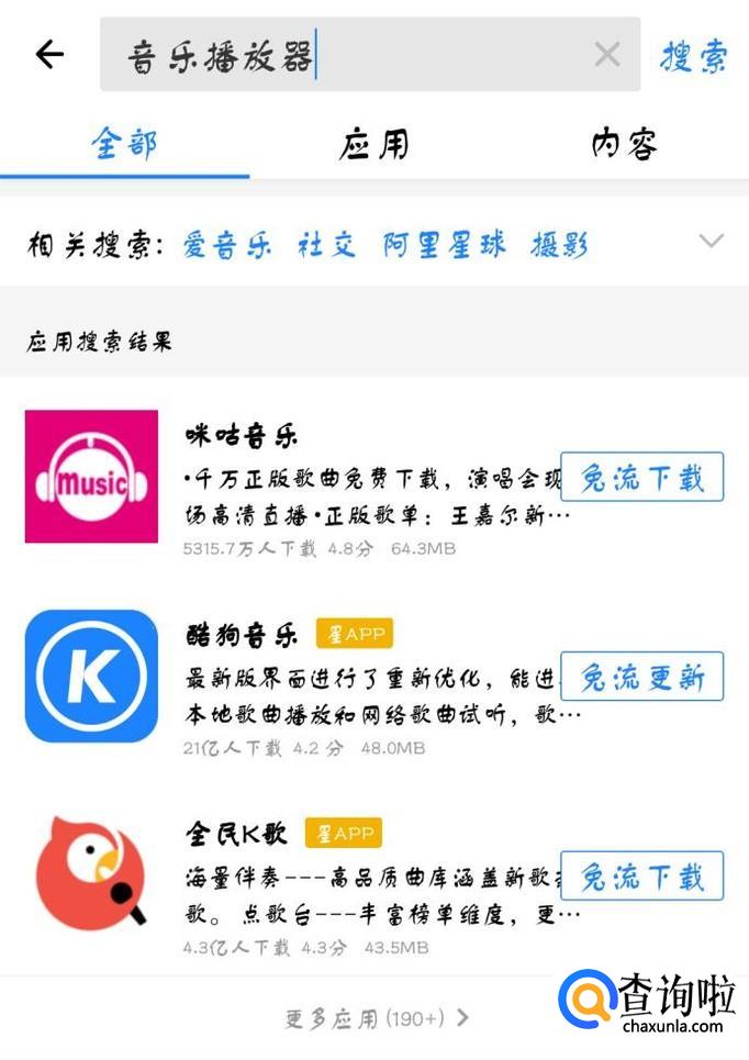 在下载下来的音乐播放器中点击“搜索”,然后,搜索自己想要设置的手机铃声,点击“下载”,将其下载至手机里。