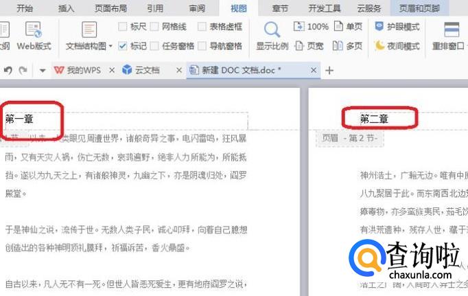 这样相邻两页页眉不同就设置完成了,效果如下图。