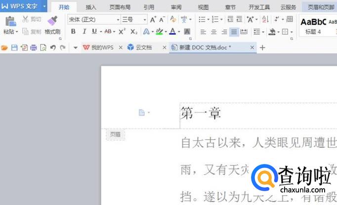 首先,我们打开任意一篇WPS文档来演示,双击首页页眉区域,就可以插入页眉,比如我们插入“第一章”。