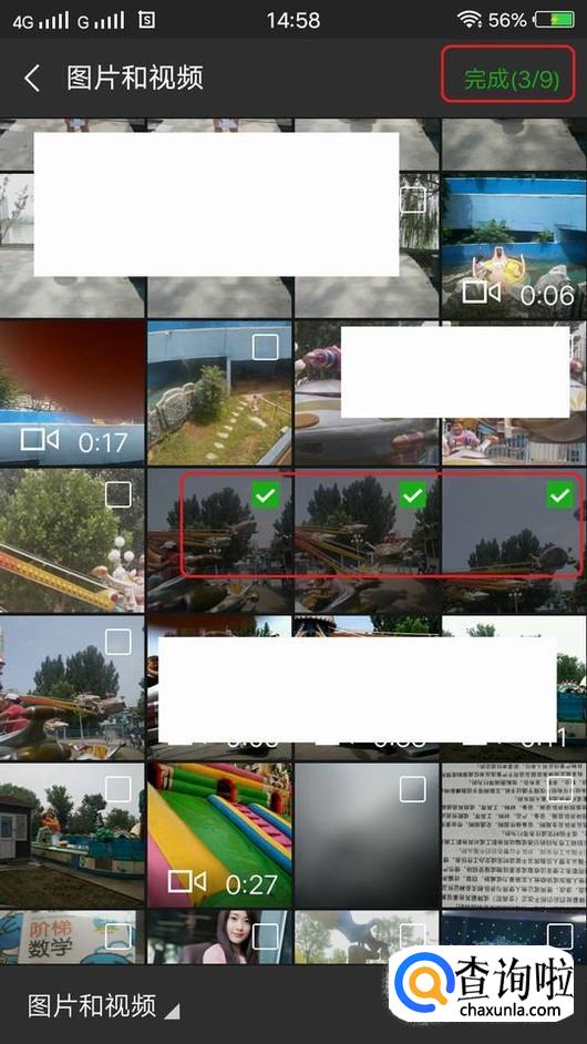 进入了选择“图片和视频”页面,我们任意选择三张图片,如图所示,点击“完成”。