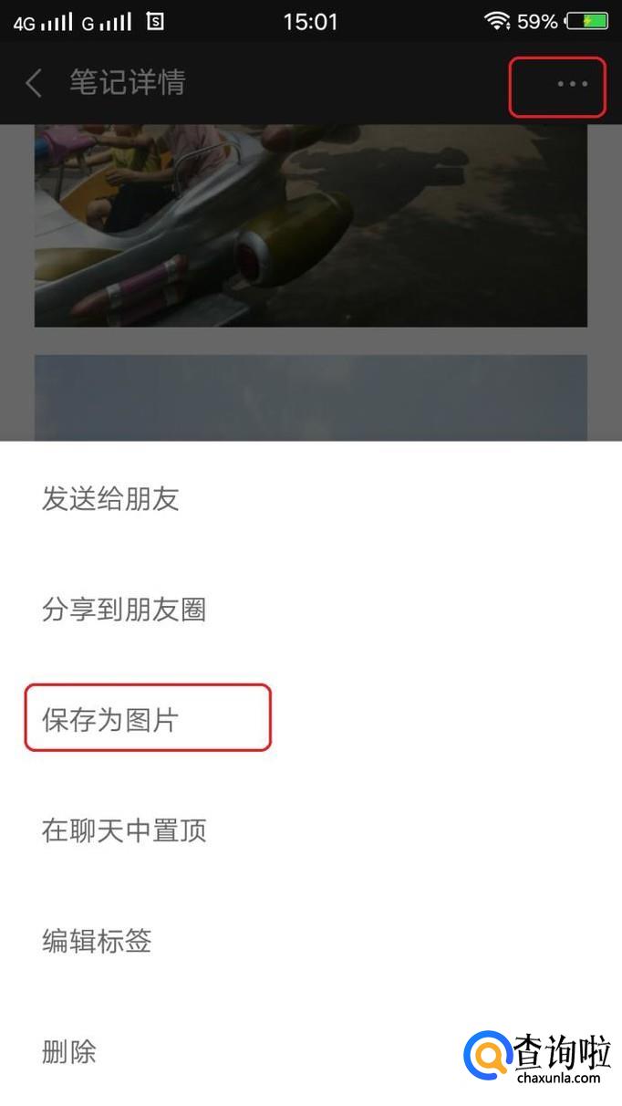 回到“笔记详情”,点击右上角“…”,弹出菜单,我们选择“保存为图片”,这样,一张由三张照片拼成的图片就做成了。