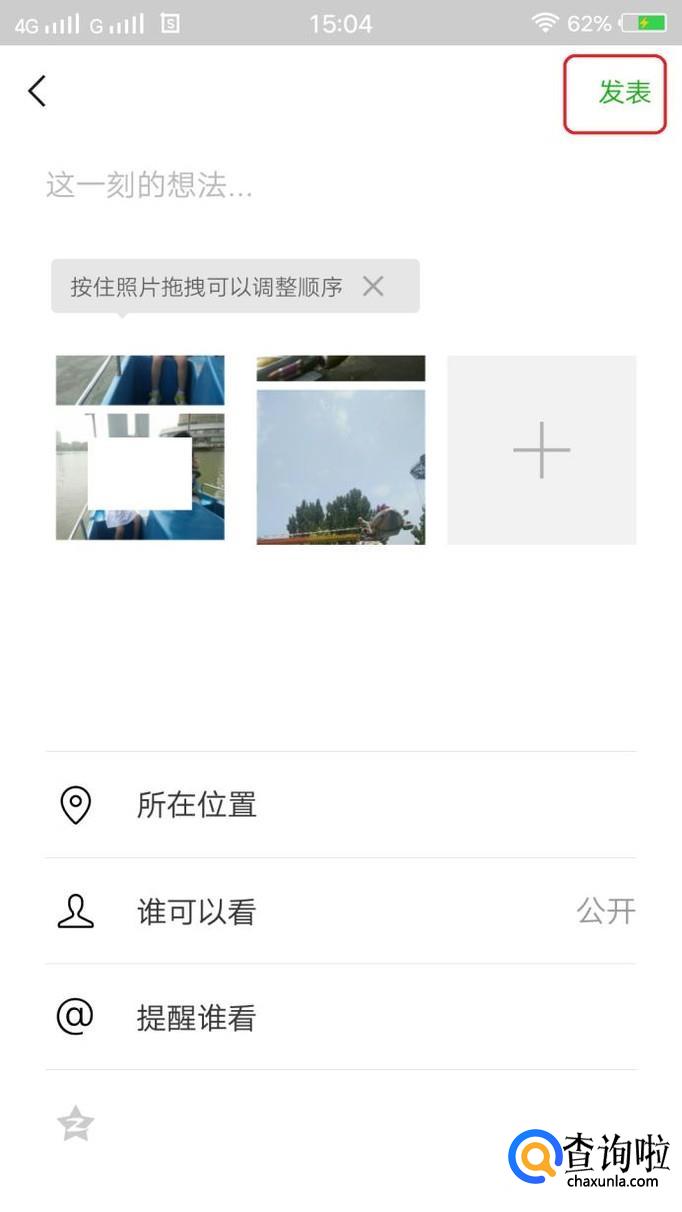 依照此方法,我们可以再选照片做成拼图,这些拼图都会保存到手机相册中。我们发朋友圈的时候,如图所示,只要选中这些拼图,点击“发表”,就可以一次性发出去了。