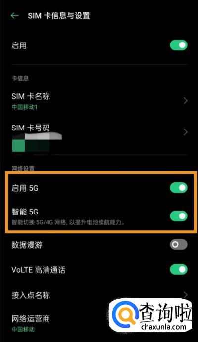 选择平常上网的卡,打开启用5G和智能5G。这样就开启成功啦