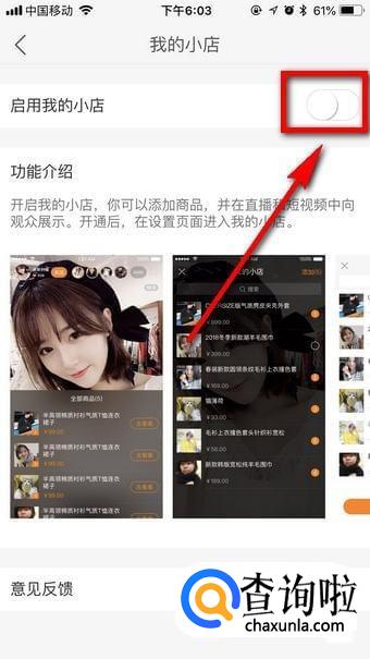 进入我的小店之后,下面会有一个卖货蕉城区,不懂得可以查看,打开上面的“启用我的小店”按钮,就可以了
