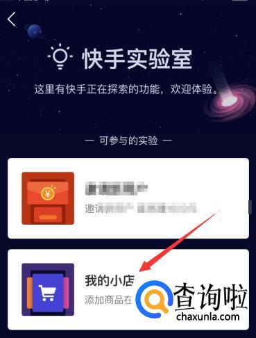 进入实验室之后,选择“我的小店”,就可以在快手中添加展示商品了
