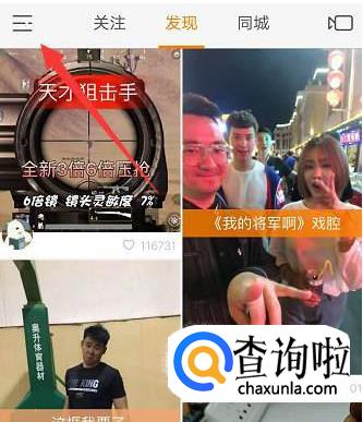 进入快手的首页,点击左上角的“更多”功能菜单