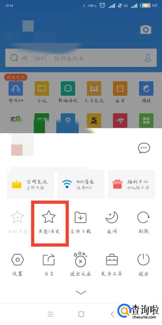 点击第一排有五角星的图标,即“书签|历史”。