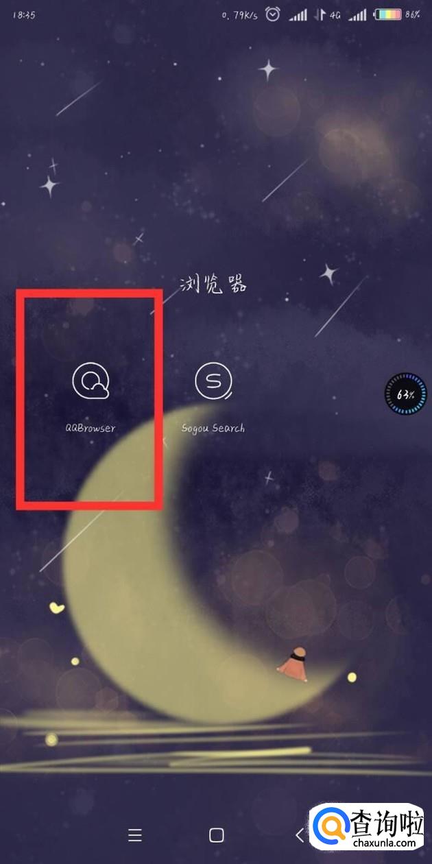 打开手机后,找到QQ浏览器的图标,点击图标,进入浏览器。