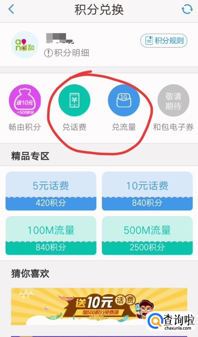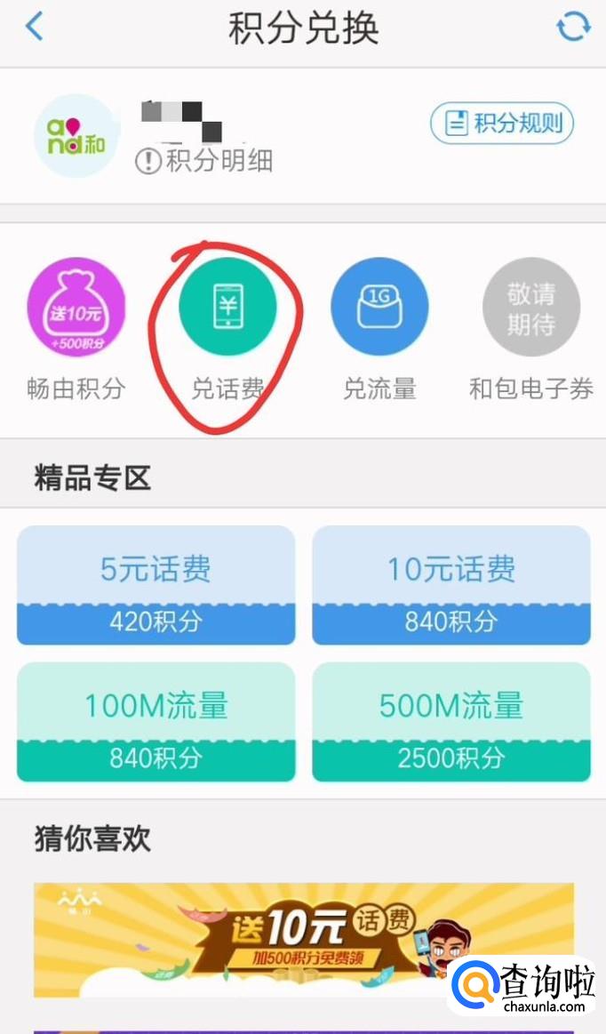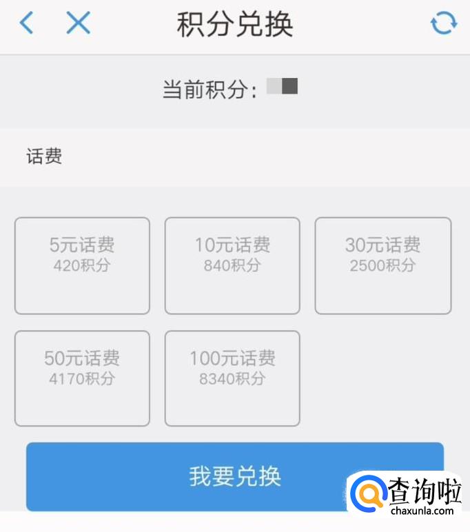 然后根据自己积分的额度兑换下面五个档次的话费即可。