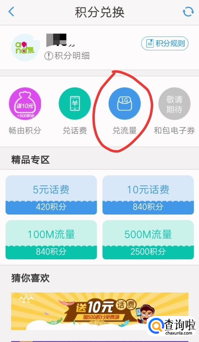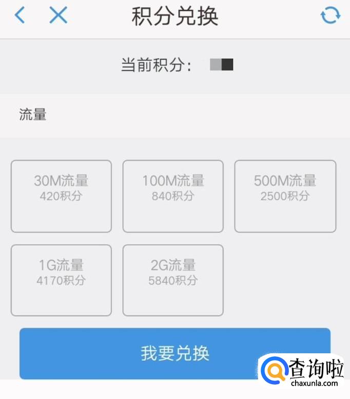 然后根据自己积分的额度兑换下面五个档次的流量即可。