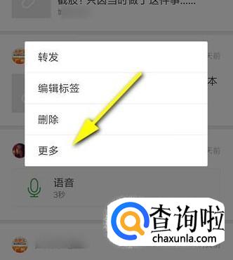 手指点住其中一条要删除的收藏内容,不放手,直至弹出一列菜单,在菜单中点:更多