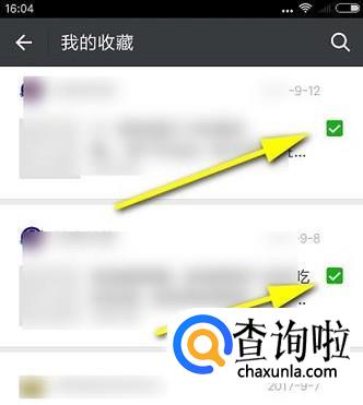 这时,每一条收藏的内容右侧都显示出一个小方框,手指点一下此小方框即在内打上一个对勾,表示选中它。选好要删除的内容后,再在屏幕的右下角点击删除按钮,即批量的把这些选中的收藏内容删除掉。