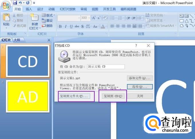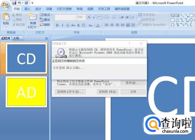 此处有两种选择,一种是复制到文件夹,另外一种是复制到CD,这个需要刻录盘,所以我们还是先选择复制到文件夹;