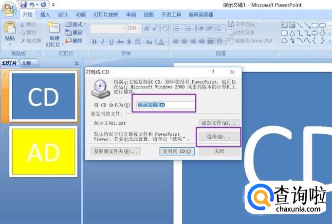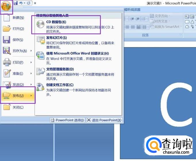 点击左上角的office按钮,点击发布,点击CD数据包;