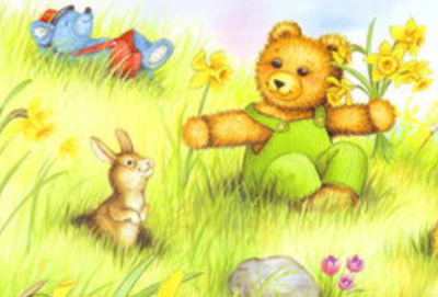 突然小熊的肚子被揪了一下,他抬头一看,原来是可爱的小兔子啊。于是委屈地说道: