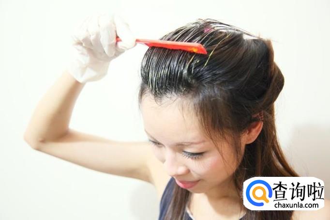 先将染发膏看着说明书调试好,染发之前不用洗头发,然后由下倒上开始染,将染发膏均匀的涂抹在头发上。