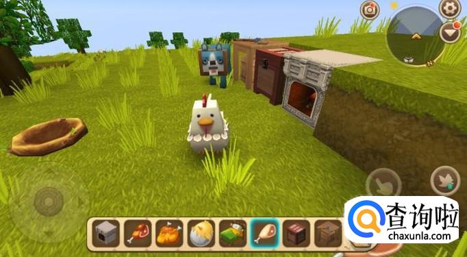 把鸡吸引来后,拿出武器,出其不意将鸡杀死,获得鸡腿。最好提前驯服一个狗,这样能大大提高效率。