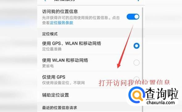 接下来将访问我的位置信息的开关打开,如下图所示