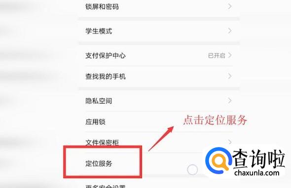 然后进入安全和隐私界面,选择最下面的定位服务,如下图所示