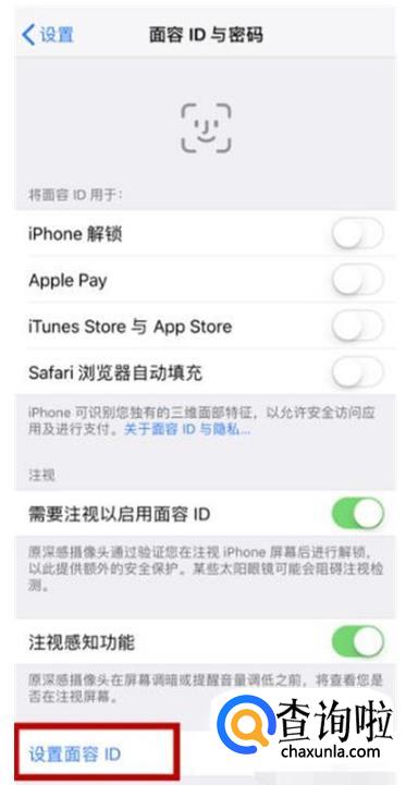 找到“设置面容ID”选项,点击打开。