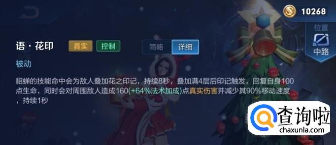 貂蝉另一个核心技能就是她的被动技能。技能的效果就是能吸血和打出真实伤害,所以搭配的铭文应该是有吸血效果和法术伤害加成效果的铭文。