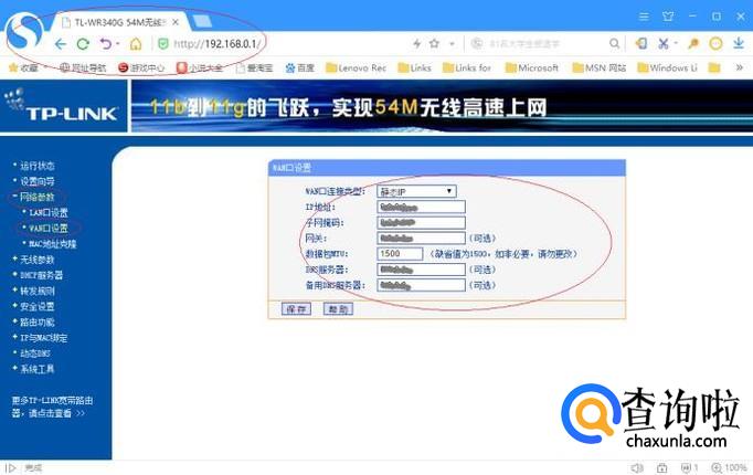 如图所示,唤出无线路由器WEB管理页面。默认显示无线路由器运行状态,选择左侧"网络参数"项。