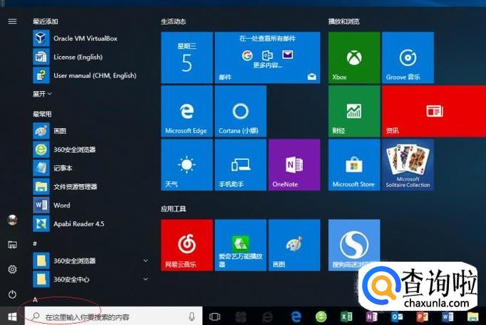 启动Windows 10操作系统,如图所示。点击任务栏"开始"按钮,用于弹出开始菜单。