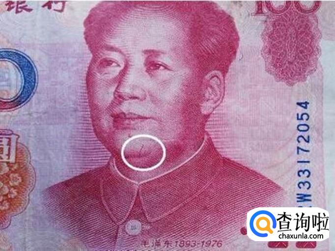 纸张在对着光线时所见的标记,钞票上的水印与正常品相反。