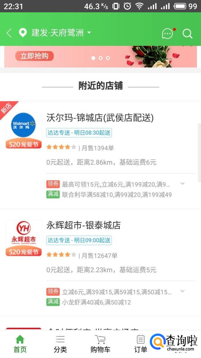 进入商家界面之后,点击想要购买的商品,点击“去结算”