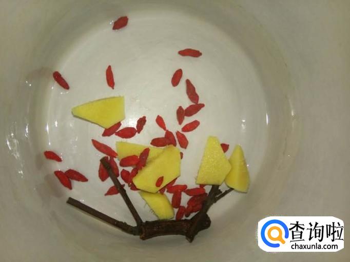 取几根桂枝,一小把枸杞,洗净了,备用;
