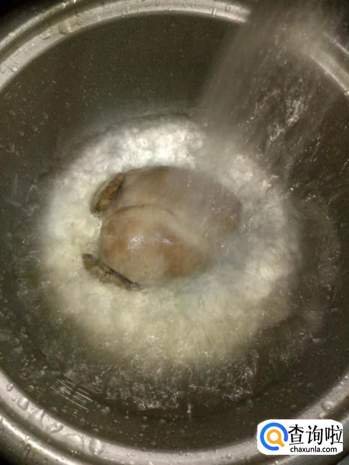 加入适量的水,按下炖煮键,开始炖煮;水的量不要太多,以漫过猪心为准;